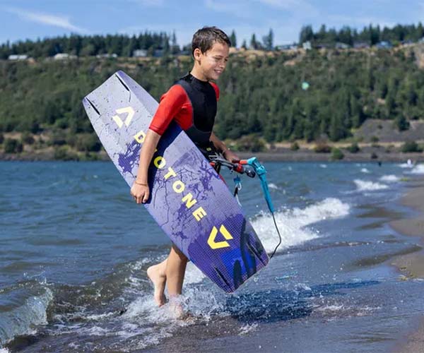 Die robuste Biax-Glas-Konstruktion stellt sicher, dass das Board den Anforderungen des Lernens und Entdeckens standhält – Session für Session bleibt es verlässlich. Abgewinkelte Rails verbessern die Höhelaufeigenschaften des Boards zusätzlich und ermöglichen es Kids, mit mehr Vertrauen gegen den Wind zu fahren.